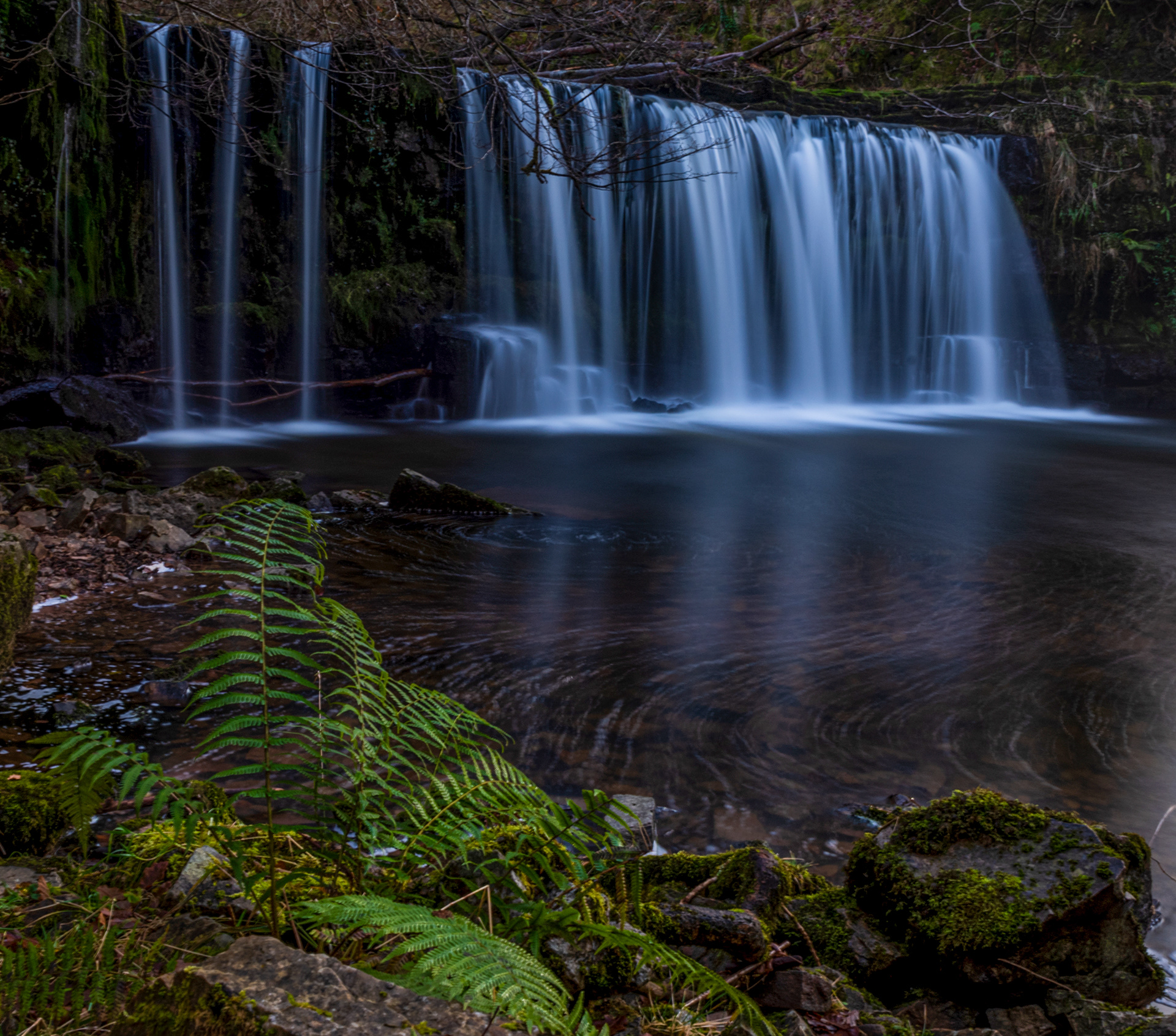 Waterfall Country is the name given to an area around the head of the Vale of Neath in South Wales where an unusually large number of publicly accessible falls are to be found. The area is loosely defined but generally includes the group of falls on the Nedd Fechan, Pyrddin, Hepste and Mellte rivers, all of which lie in the country between the villages of Pontneddfechan and Ystradfellte in the southern part of the Brecon Beacons National Park. All of these falls lie within or on the boundary of the county of Brecknockshire, now part of the unitary authority of Powys. A few miles further west are Henrhyd Falls on the Nant Llech, a tributary of the Tawe and to the southwest are Melin Court Falls on the Melin Court Brook, a tributary of the River Neath. These, along with Aberdulais Falls on the Dulais, a further tributary of the Neath are also encompassed by the term 'Waterfall/s Country' by some writers